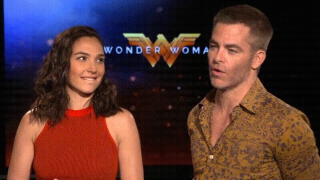 Gal Gadot bit her lip as she stared and smiled at Chris Pine during an interview