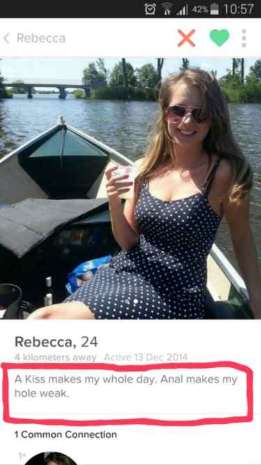 Rebecca: "A kiss makes my whole day. Anal makes my hole weak." #LOL