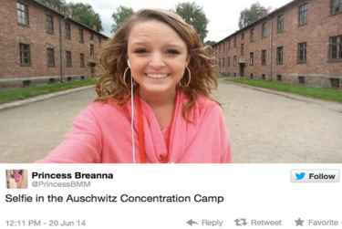 A high school graduate selfie in front of Auschwitz-Birkenau concentration camp