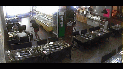 #Shocking clip of a girl in a Chinese restaurant caught on fire because of stupid waitress